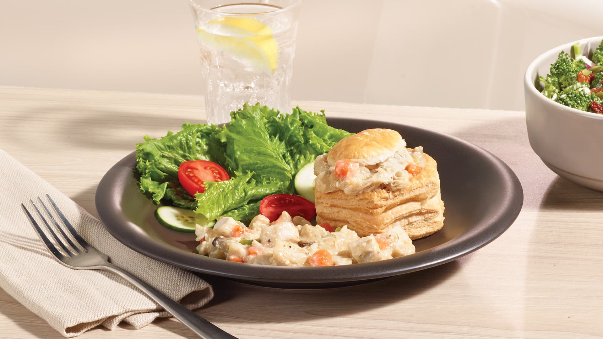 Water, Chicken, Spice (modified corn starch, skim milk powder, salt, spices), Mushrooms, Broccoli, Carrots, Cooking cream (milk, cream, carrageenan, cellulose gum, guar gum, carob gum, mono-and diglycerides), Celery, Chicken broth