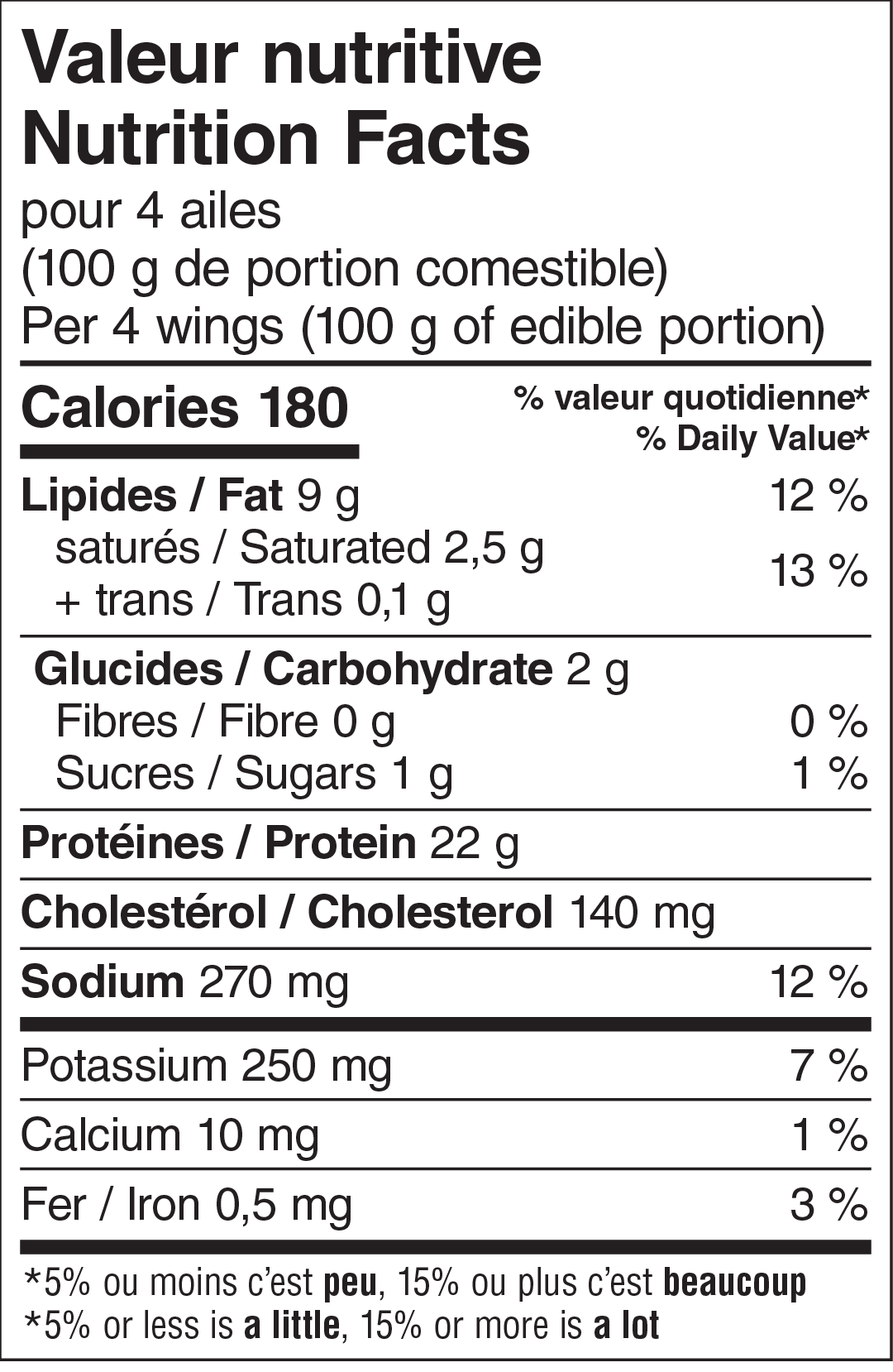 Portion(s) : 4 ailes par portion